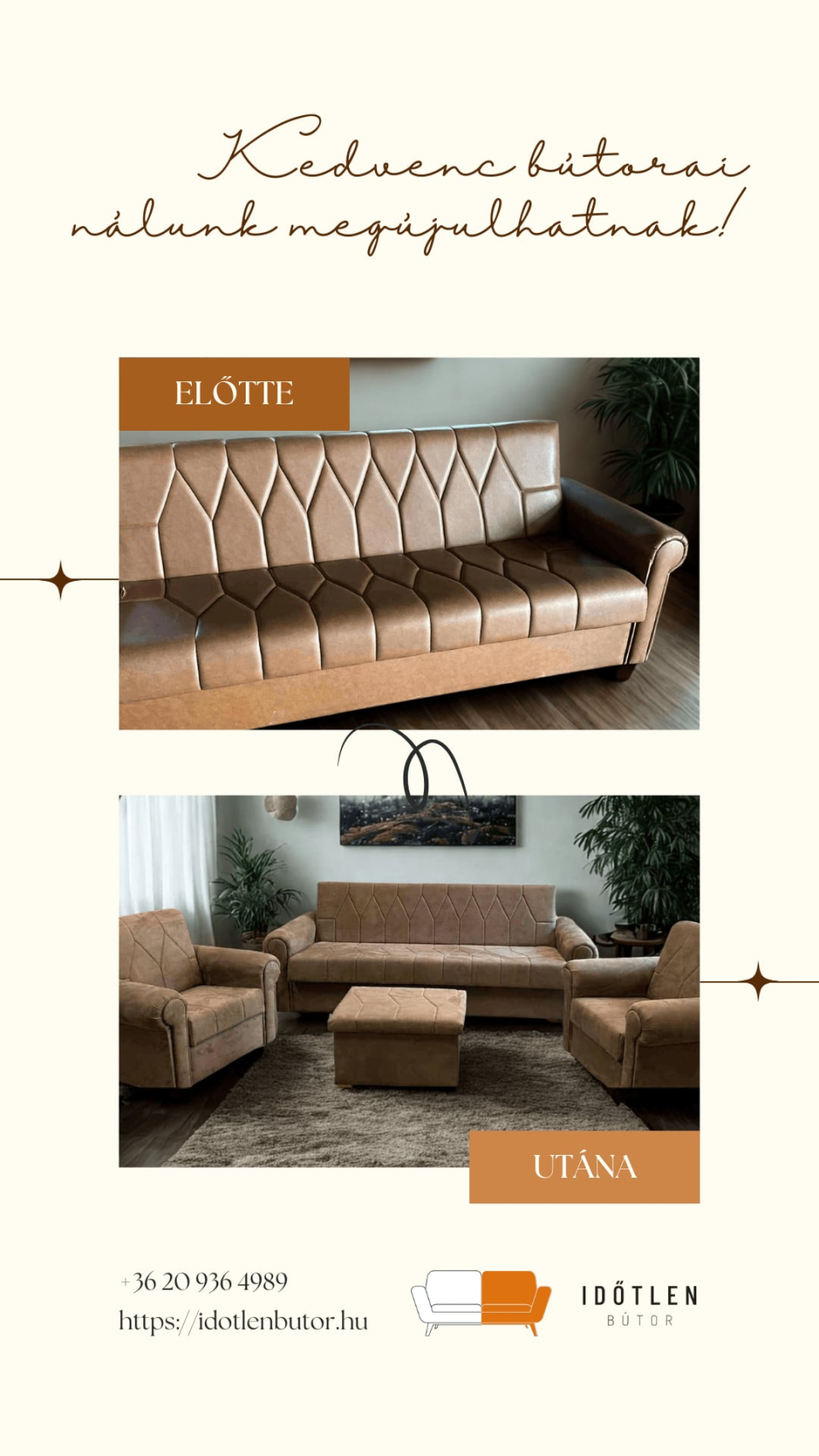 Egy régi bútor is lehet újra stílusos és vonzó! Az otthoni ülőgarnitúra újrakárpitozásától kezdve, a kis- és nagy bútor felújításáig állunk mindenki rendelkezésére, aki otthonát, vendéglátóhelyét vagy intézményét csinosítani szeretné.